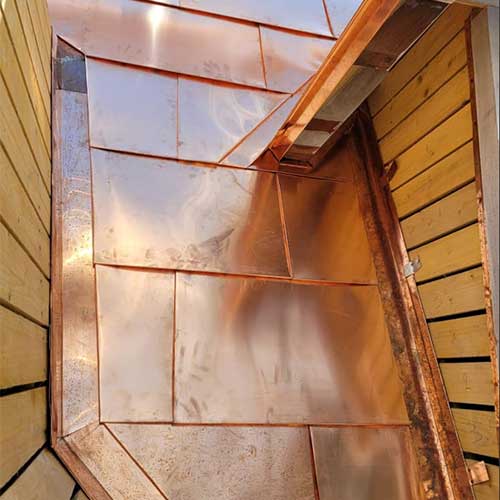 - La restaurantion de l’ornementation en cuivre qui souligne la ligne de bris de la toiture.